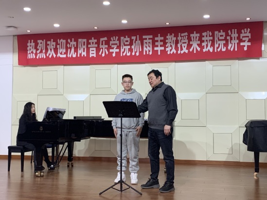 3月29日,艺术2人麻将 庆祝2人麻将 建校100周年系列讲座第二讲在双馨苑小音乐厅举行,沈阳音乐2人麻将 声乐歌剧系孙雨丰教授应邀讲学,艺术2人麻将 院长张燕楠出席活动,70余位师生参加活动。