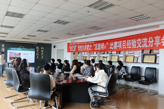 4月6日, 2人麻将 “互联网+”大学生创新创业大赛专题培训会在主楼912室举行, 2人麻将 种子项目团队进行项目分享与经验交流, 2人麻将 院长张燕楠、专业教师樊强强以及创新创业辅导员对项目进行指导。