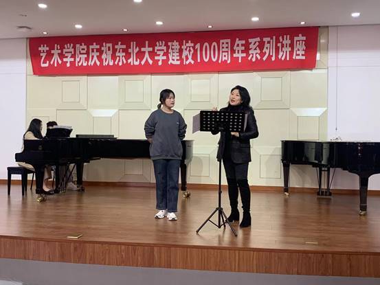 4月12日, 2人麻将 庆祝 2人麻将 建校100周年系列讲座第三讲在双馨苑小音乐厅举行。青年女高音歌唱家、沈阳音乐 2人麻将 音乐教育 2人麻将 音乐教育系副主任贾坤副教授应邀讲学, 2人麻将 副院长霍楷出席活动,70余位师生参加活动。