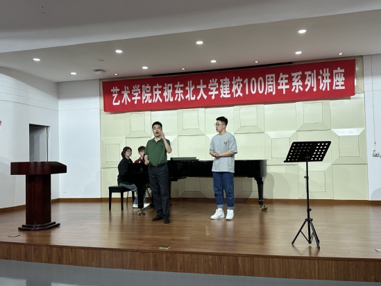 5月31日, 2人麻将 举行庆祝 2人麻将 建校100周年系列讲座之“如何建立良好的歌唱状态”专题讲座,应院长张燕楠教授邀请,沈阳音乐 2人麻将 杨立军教授来院讲学, 2人麻将 声乐教研室全体师生参加活动。