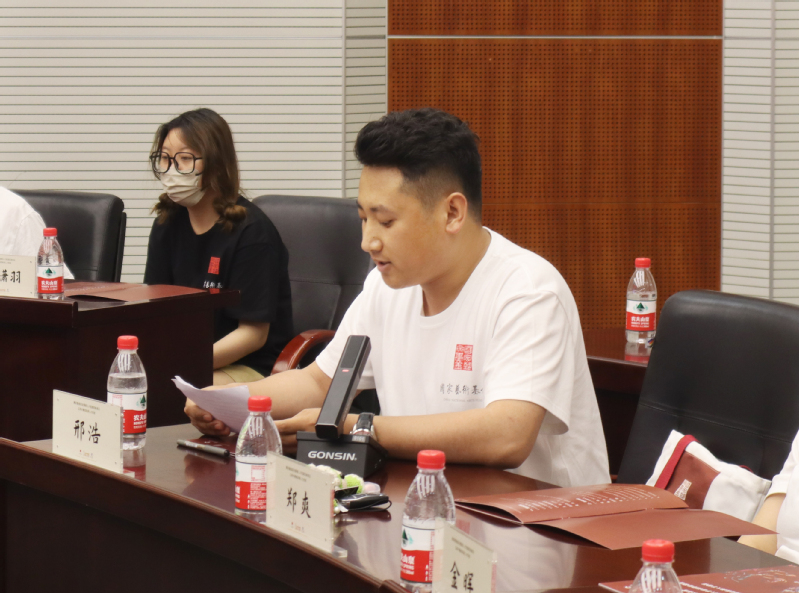教师邢浩代表全体学员发言,他表示,自己会全身心投入学习,不断提升木偶戏表演专业知识和非物质文化遗产保护与传承意识,学有所成带回母校,促进文化交流。