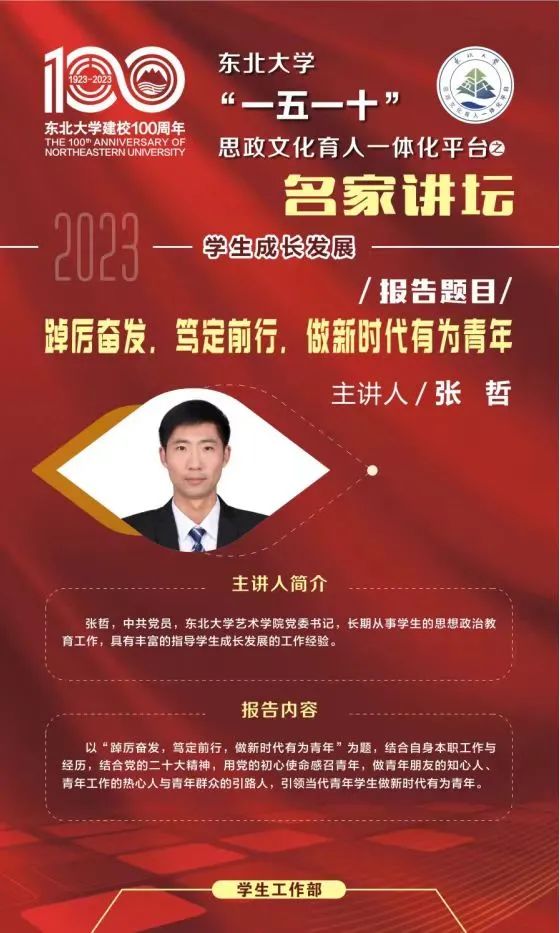 5月31日下午14:30,艺术2人麻将 于何世礼教学馆开展名师讲坛-踔厉奋发,笃定前行,做新时代有为青年。授课人为艺术2人麻将 党委书记张哲,会议由艺术2人麻将 学生工作办公室主任娄洹博主持。