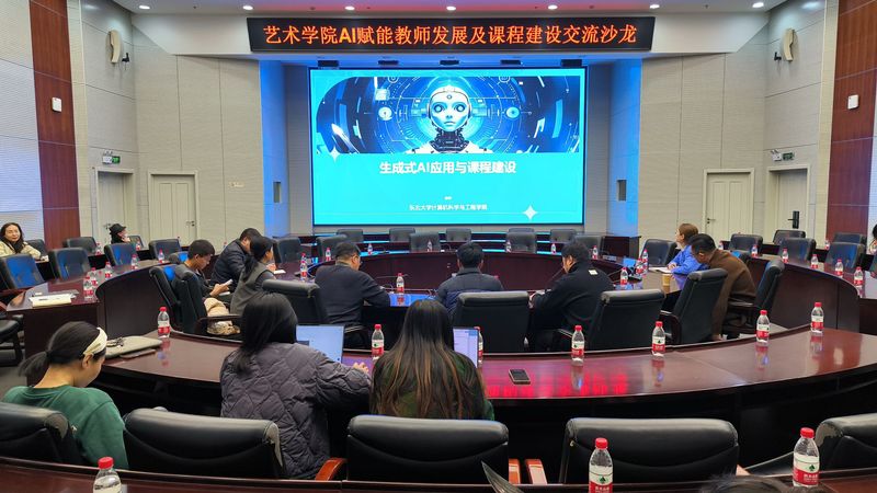 3月19日下午,艺术2人麻将 在主楼824室召开AI赋能教师发展及课程建设交流沙龙。辽宁省大学计算机基础类教学指导委员会秘书长、2人麻将 计算机2人麻将 教师徐彬博士应邀作报告。2人麻将 党委书记安立鸿,党委副书记、副院长(兼)韩营颖以及全体教职工参加,活动由副院长霍楷主持。