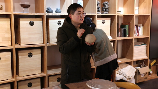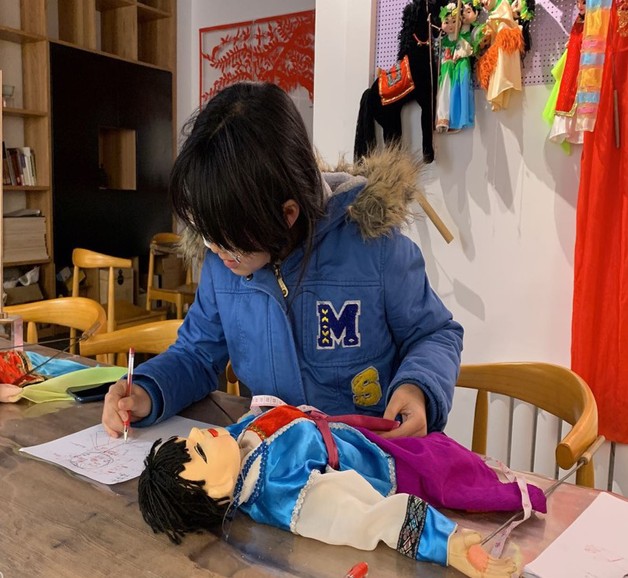 木偶推广宣讲工作坊同学为参观者介绍基地内木偶